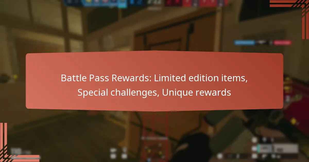 Battle Pass Rewards in Tom Clancy’s Rainbow Six Siege are exclusive items and challenges that players can unlock by progressing through the game’s seasonal Battle Pass. These rewards enhance the gameplay experience by offering unique cosmetics, special challenges, and other incentives that encourage player engagement.